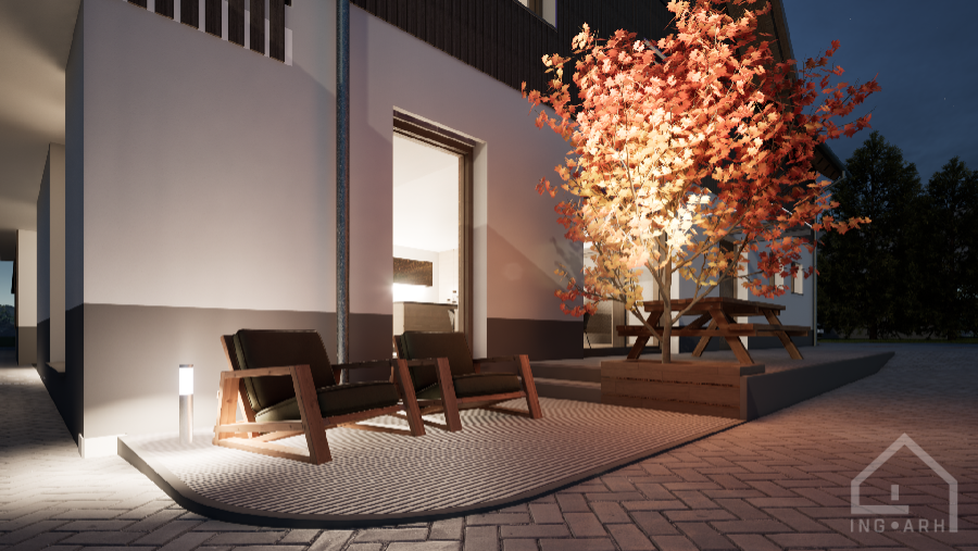 Projekt zajema rekonstrukcijo starega gospodarskega objekta v vaškem jedru Bleda v sodobno stanovanjsko hišo s tremi turističnimi apartmaji, pri čemer ohranjamo značaj lokalne arhitekture in kulturne dediščine.